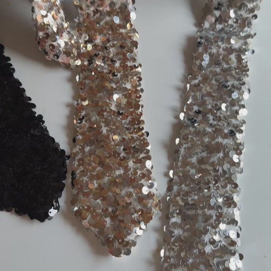 Designet med pailletter der fanger lyset fra hvert eneste kamera, og en matchende lommeklud der fuldender udtrykket.
